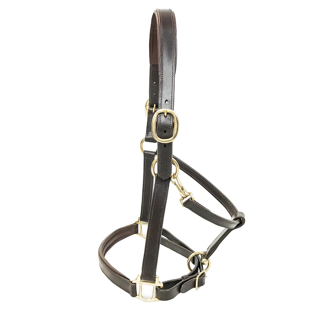 Primera leather headcollar with padding over the poll and noseband for comfort. It is full adjustable with buckles on both sides of the headcollar and around the noseband. The buckles, clips and attachments are made from solid, durable brass.