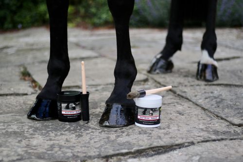 The Black Hoof Shine, is the same consistency but with a deep black colouring to blacken hooves giving a super smart finish. This however is not compliant with SSADL Ruling due to added colouring.